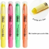 O Marca Texto Gel possui tinta sólida que não transfere para outra folha. O produto, com ponta arredondada de 3 mm, está disponível nas cores sortidas amarela, laranja, rosa e verde.